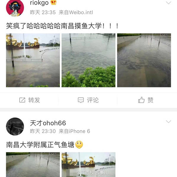 大叔在水面扔进一块牛肉,几分钟后出现大水花