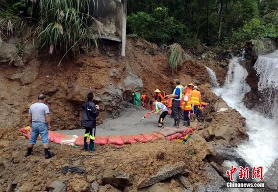 6月25日晚,江西省高速集团南昌西管理中心发现,位于大广高速江西宜丰县境内的电站大桥受洪水冲刷,致使5号桥墩部分桩基裸露。26日凌晨,南昌西管理中心连夜调集挖掘机、沙袋等设备和应急物资抵达现场,并开展排水工作。为确保桩基牢固,养护人员调来混凝土泵车,借助输送臂从30多米高的高架桥桥面由上往下浇筑早强混凝土,对桩基进行加固。截至目前,已浇筑混凝土30立方,整个桩基加固预计使用80多立方,采取分层浇筑,预计28日下午全面完成加固工作。欧阳斌 摄