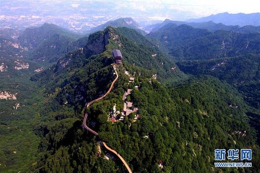 少华山潜龙寺景区(6月28日摄)。少华山位于陕西省渭南市华州区,因与西岳华山峰势相连,遥遥相对,但低于华山,因此名曰少华山。少华山自古以来就是关中名山,自然景观和人文资源绚丽多姿,群峰竞秀,山势峻险,沟谷幽深,河水奔流,景象万千。
