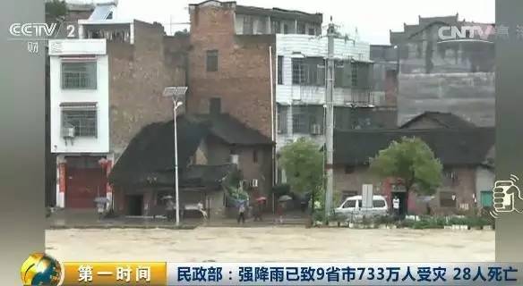 民政部:强降雨已致9省市733万人受灾 28人死亡
