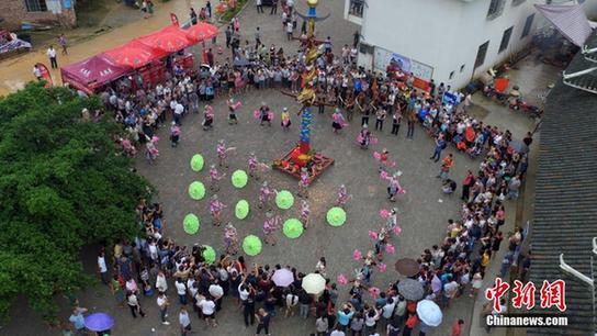 “闹鱼节”活动中吹芦笙跳踩蹚舞。 谭凯兴 摄