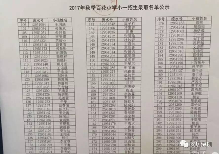 百花小学录取名单