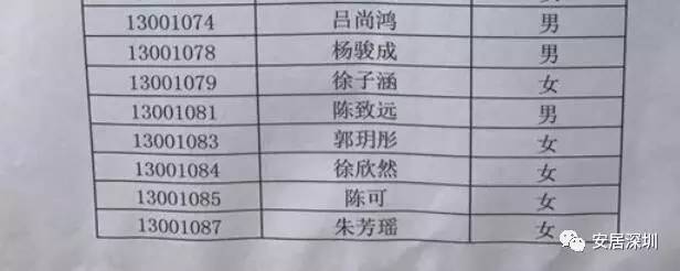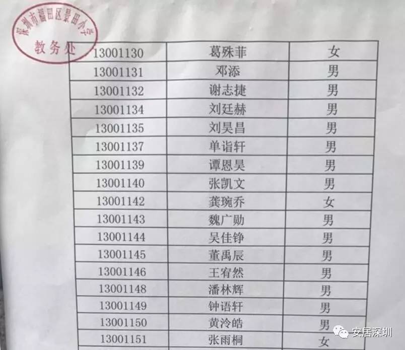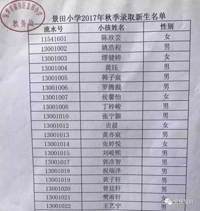 景田小学录取名单