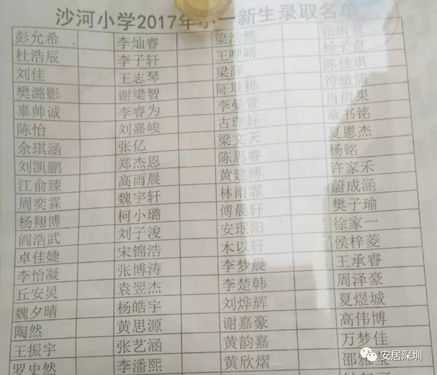 沙河小学录取名单