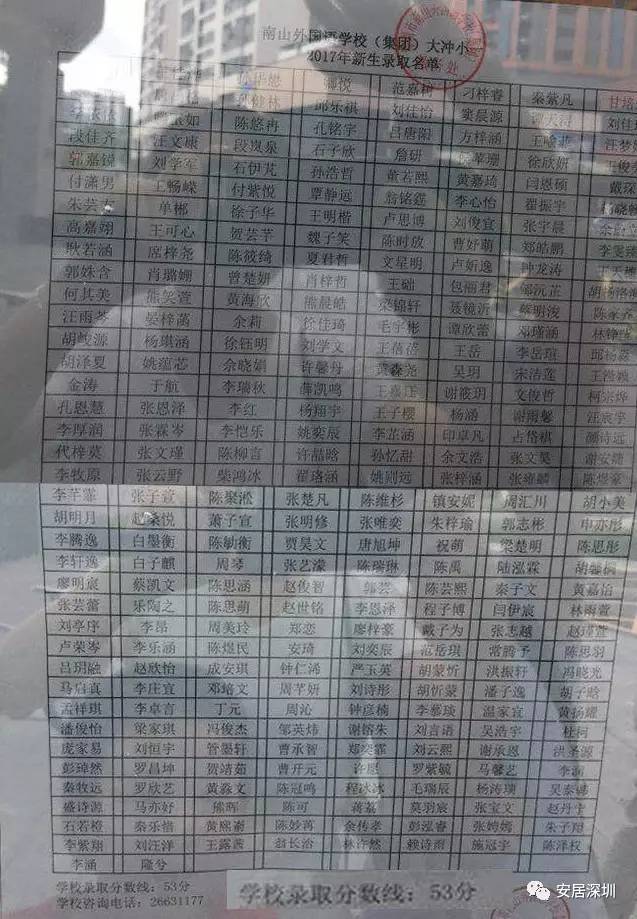 深圳各大小学录取名单公布!这所学校录取分数居然要90