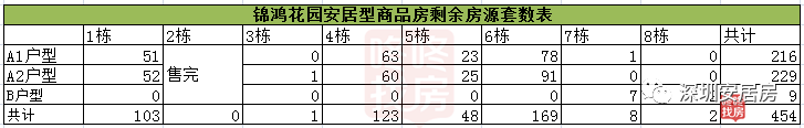 锦鸿花园安居型商品房剩余房源套数表!