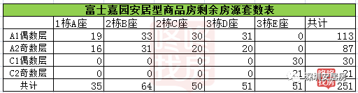 富士嘉园安居型商品房剩余房源套数表!