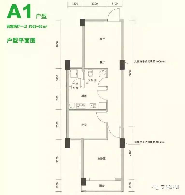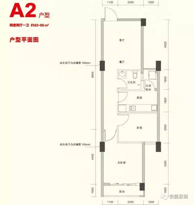 1、单身居民及二至三人家庭可认购上述项目建筑面积约65㎡的两房户型;