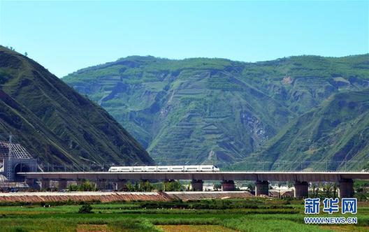 7月9日,一列高铁列车行驶在宝兰高铁甘肃天水段南河川大桥上。 新华社发(武龙 摄)