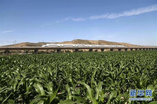 7月9日,一列高铁列车行驶在宝兰高铁甘肃定西段。新华社发(王克贤 摄)