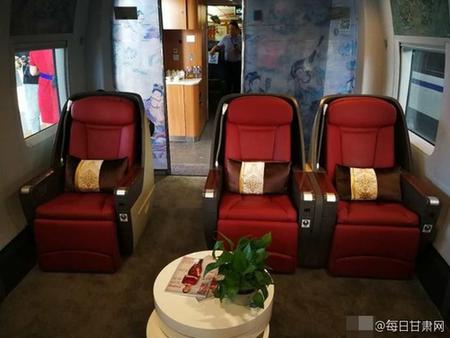 对于普通民众来说,这条高铁带来的便利与实惠也显而易见。开通后,兰州至“北上广”三地9至11小时“交通圈”初步形成,如果你是一名从上海出发的“吃货”,早上你可能还在吃上海小笼包,中午可以吃上西安羊肉泡馍,晚上就可以吃上兰州牛肉面。图为宝兰高铁内部环境。