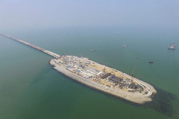 2011年1月,岛隧工程正式动工,至年底完成东、西人工岛岛壁围护工程,实现“当年动工,当年成岛”的目标。新华社资料图