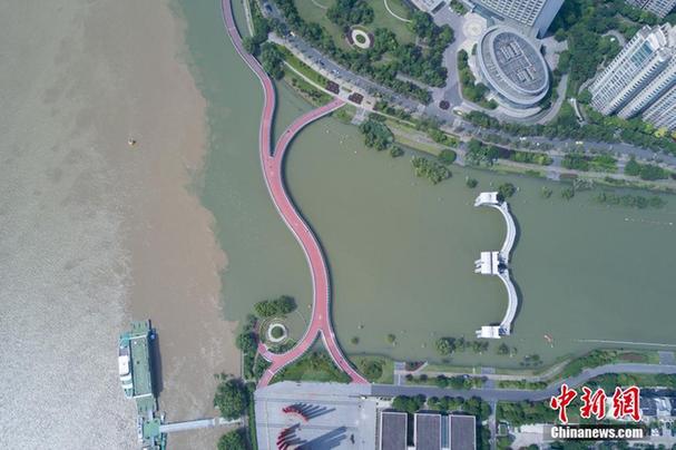 7月10日,航拍长江与南京秦淮河交汇处,江水与河水“泾渭分明”。当日,江苏水利厅发布的水情信息显示,长江南京段水位已降至警戒线以下。中新社记者泱波 摄