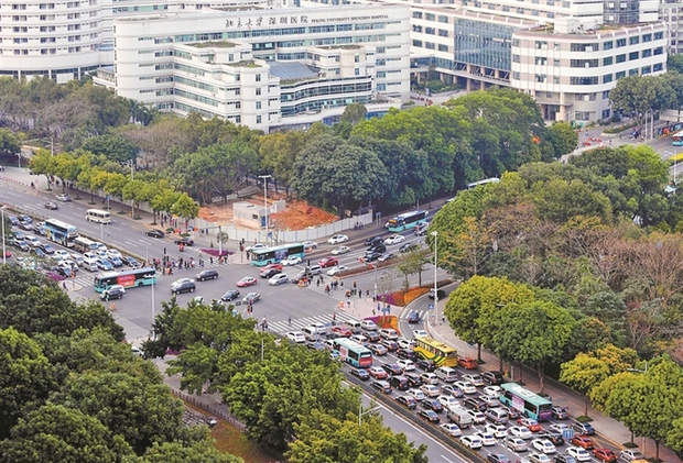 位于福田区莲花路的北大深圳医院门前,每天早高峰都会出现拥堵,医院外等候车辆长龙达数百米,影响过往交通,有时公交车都难以进站。在今年深圳“两会”上,北大深圳医院附近交通拥堵问题引发市人大代表高度关注。