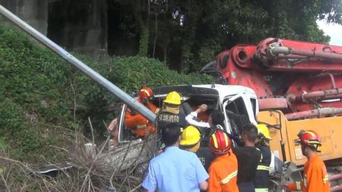 事故发生后司机被卡在严重变形的车内,路人立即报警,坂田消防中队的赶到了现场进行处理,从坂田消防中队提供的视频可以看到,队员钻入车内将变形的车门和方向盘撬开,10多分钟后将下半身被卡在车内的司机救出并送往医院。据了解,根据交警初步调查情况,混凝土泵车可能是下坡的时候刹车失灵后导致事故发生。现场混凝土泵车、信号灯柱以及过路小车受损严重,混凝土泵车司机腿部受伤,小车司机避让及时未受伤,其他没有人员伤害。记者 彭晨 实习生 贺靛婧 文/图