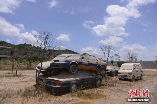 长沙洪水退去 航拍被淹停车场如灾难大片