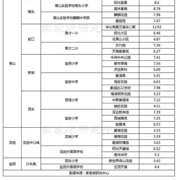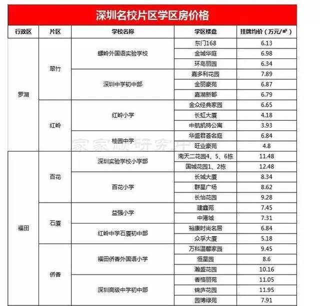 深圳名校学区房价格表大全 最贵的近13万/平