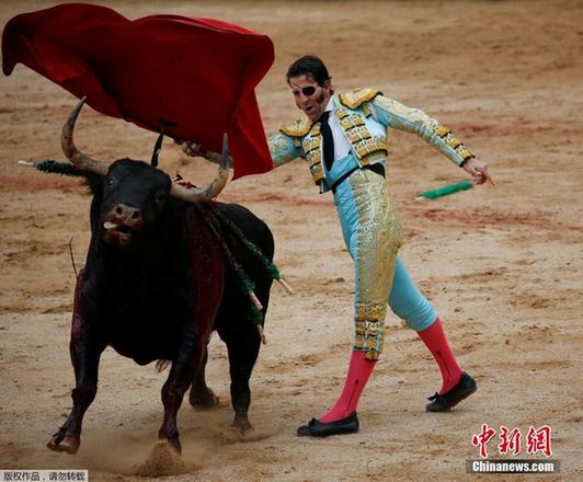 奔牛节斗牛士被顶伤 抬走时不忘回头“眼神杀”