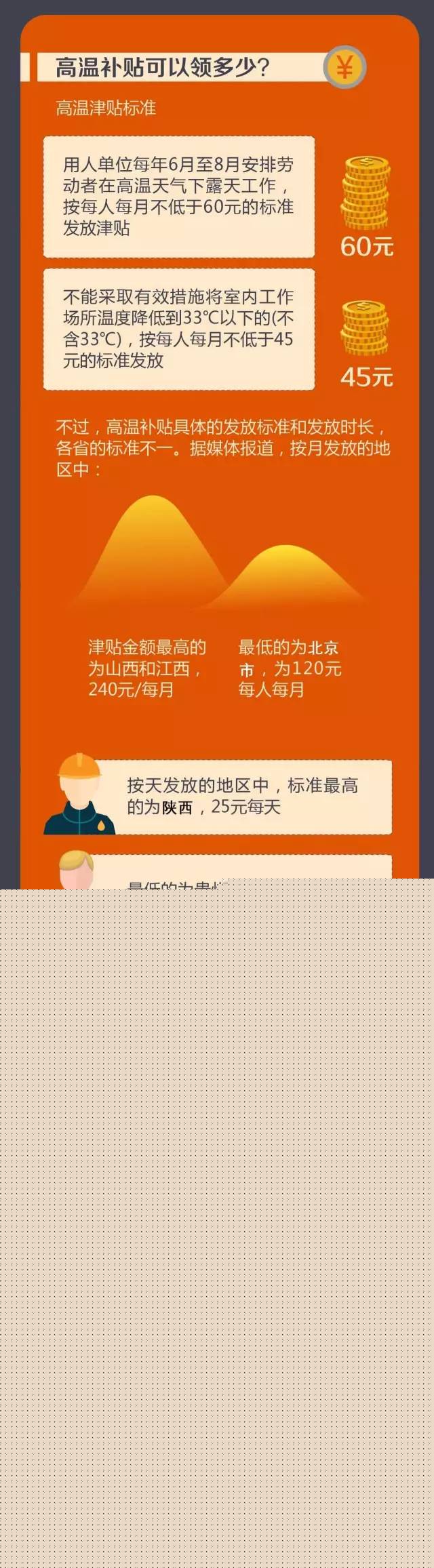 在高温天气下(日最高气温达到35℃以上),露天工作以及不能采取有效措施将工作场所温度降低到33℃以下的劳动者