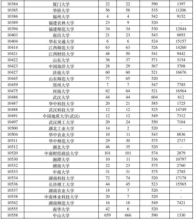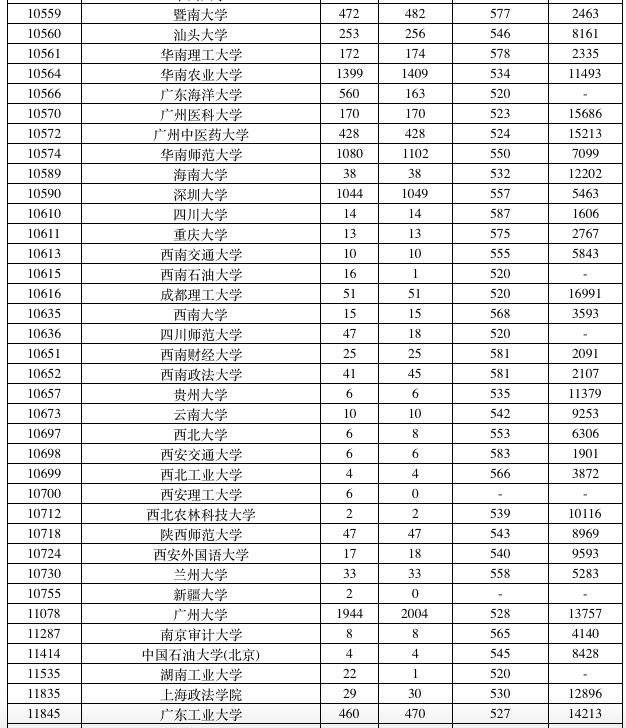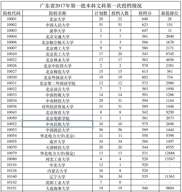 广东省2017年第一批本科(文理)第一次投档情况汇总(点击可看清晰图)