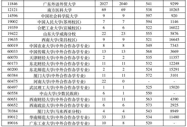 五是中外合作办学专业逐步为考生所接受。近年来,我国高等教育国际合作办学不断深化,不少一本高校利用自身优势开展中外合作办学,引进国外著名高校合作举办优势专业,实现“强强合作”。今年,在广东招生的各校中外合作办学专业的招生规模和计划较往年都有所增加。但从投档情况看,基本上都能满档,而且许多高校的投档线远超一本线。如中国人民大学(苏州校区)文科、理科投档线分别为594分、607分;厦门大学(中外合作办学专业)文科、理科投档线分别为572分、569分;暨南大学(中外合作办学)理科投档线为541分;华南师范大学(中外合作办学专业)文科、理科投档线分别为534分、526分。不出国门就可以享受国际教育,受到考生及家长的欢迎。
