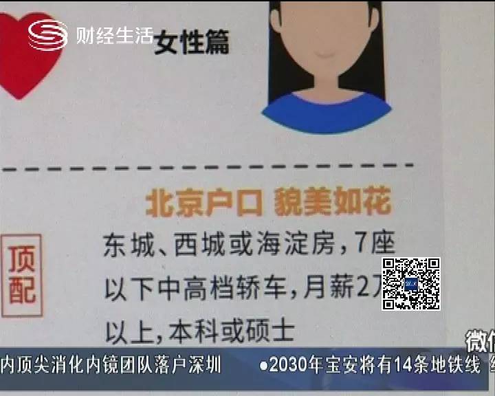 近日,北京某相亲角的一份相亲价目表遭到网上热议,该价目表将户口、房产、学历进行量化估值,一个拥有北京户口、中心区有房产的海归博士身价最高可达到1329万,属于相亲对象中的顶级配置。那么在深圳的婚姻市场,是否也存在类似的一份相亲价目表呢?