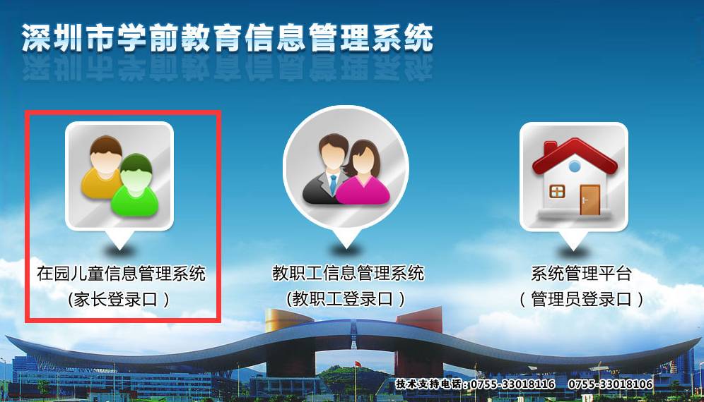 1、进入深圳市学前教育信息管理系统:http://ertong.sz.edu.cn/ ,选择“在园儿童信息管理系统(家长登陆口)”
