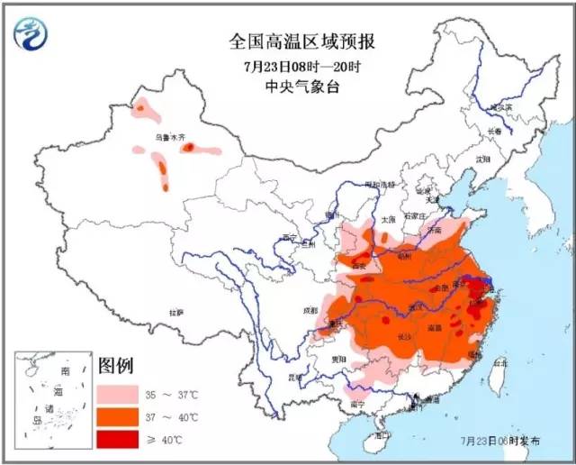 23日,中央气象台继续发布高温橙色预警,这已经是中央气象台连续第17天发布高温预警。未来一周,西北地区东南部、黄淮到江南一带,大范围的高温天气仍会持续。杭州今明天的气温都将达40℃或以上,武汉、南京、合肥、南昌等城市的最高气温在38-39℃,酷热程度同期少见。