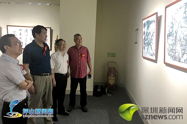 深圳新闻网7月26日讯(记者 郑则彬)为庆祝建军九十周年,7月25日,坪山区在龙田街道富裕高文创基地举办“水墨军魂”军旅书画名家邀请展。坪山区政协主席陈主,区政协秘书长杨辉填,龙田街道党工委书记、办事处主任刘玉红,深圳市画院院长徐章,区委宣传部副部长刘贵彬,龙田街道党工委委员、办事处副主任庄永营,中国版画院副院长隋自更,坪山区美术家协会主席蒋国祥,中国文化产业促进会书画艺术委员会副主任高正石等出席书画展开幕仪式,受邀参展艺术家及嘉宾50余人参加此次活动。