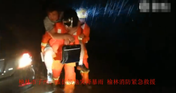 陕西榆林绥德暴雨引发水灾 街道变“河流”漫过车顶