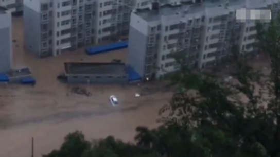 陕西榆林绥德暴雨引发水灾 街道变“河流”漫过车顶