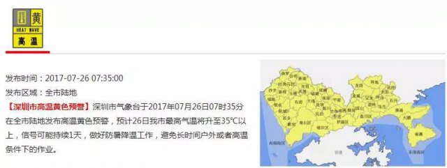 昨天早上,深圳市气象台发布高温黄色预警,气温差不多达到35℃。