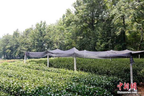 7月27日,大片龙井茶树被太阳“烤焦”。受浙江杭州持续高温的影响,西湖龙井茶一级保护区内一些特定品种和茶龄较小扎根不深的龙井茶树均出现了程度不等的晒伤情况。中新社记者王远 摄