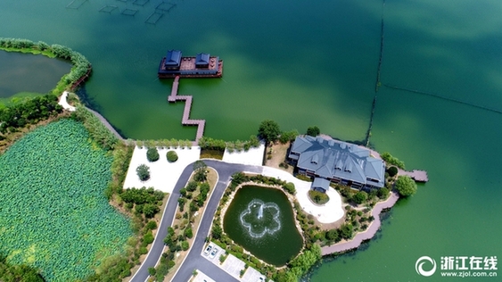 7月29日,俯瞰德清县洛舍镇洛舍漾,水清、地绿、景美。洛舍漾通过全面落实“河长制”,推动治水常态化长效化,使当地变成了一处风景宜人的湿地公园。