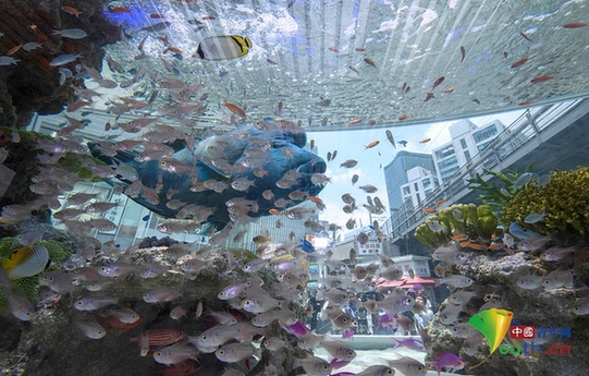 又丑又萌 巨型蓝色苏眉鱼吸引大批民众围观
