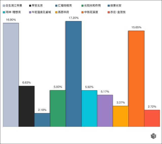 从图10可以看出,位于门头沟区永定河边上的丽景长安,成为最受北京90后人群关注的楼盘。其次,位于通州区的合生滨江帝景和顺义区的中铁花溪渡也颇受90后青睐。