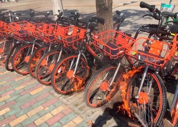 网传燃烧单车的照片图片来源:新民邻声、澎湃新闻