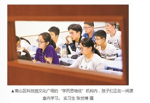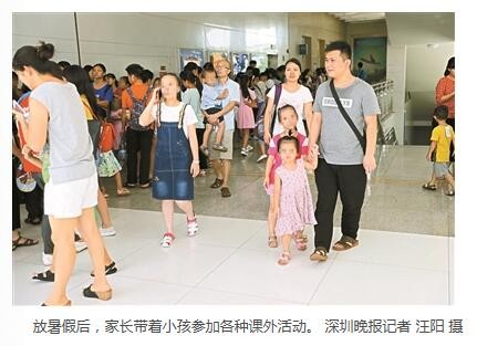 暑假里,深圳市福田区百花新天地广场异常热闹。在这座看似平凡的大楼里,数十余家教育培训机构隐身其中。周五下午3时,在二楼的大厅和走廊里,家长们领着小孩匆忙奔走在不同的培训机构之间。