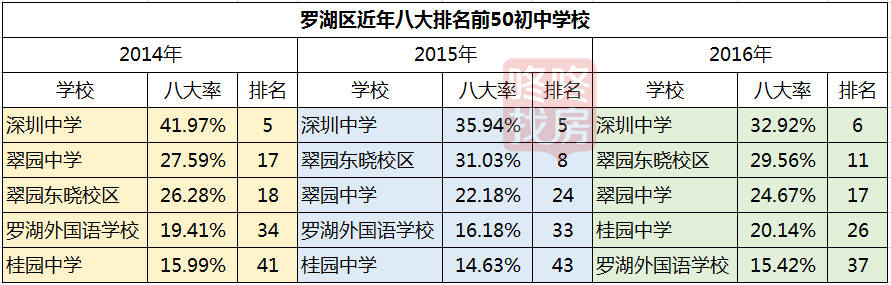 罗湖外国语学校成绩在全市30位比较稳定,但大家可能不知道的是罗外有自己的高中部,每年都有100名以上的学生选择到本校高中就读,所以罗外初中部的真实实力未能在表中体现。