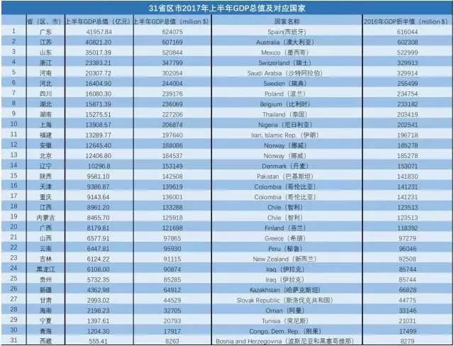如果将各地的GDP总量与世界各国相比,各省区市均称的上“富可敌国”。