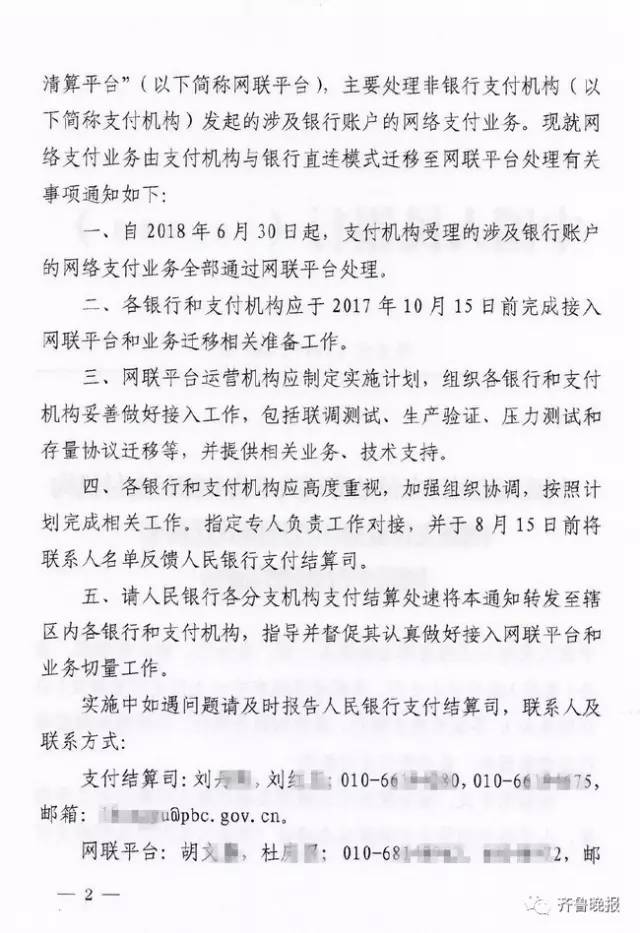 8月4日,央行支付结算司向有关金融机构下发通知(下简称《通知》),要求自2018年6月30日起,支付机构受理的涉及银行账户的网络支付业务全部通过网联平台处理。此外,还要求各银行和支付机构应于今年10月15日前完成接入网联平台和业务迁移。