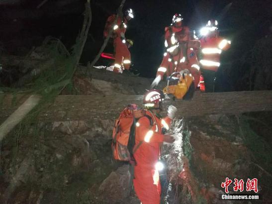 8月8日21时19分,四川九寨沟发生7.0级地震,震中位于阿坝州九寨沟县漳扎镇,当地人口密度约6人/平方公里。九寨沟县、松潘县、黑水县、汶川县、若尔盖县、阿坝县震感强烈,九寨沟县全城停电后恢复,电话通讯正常。图为阿坝消防官兵赶赴震中,边走边清障边救援。图片来源:阿坝消防