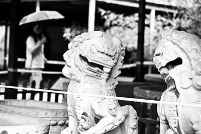 游客发现石狮口中缺少一颗石球