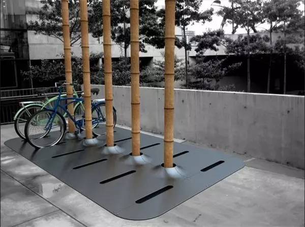 很多自行车架还融入到了其他功能中,譬如兼具停车功能的户外坐具——