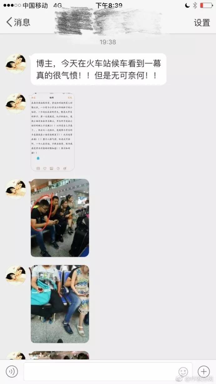 也有网友质疑为何拍照者不站出来制止?作家陈岚表示,拍照者是单独一人,而且是女生,对方可能有4个成年人(拍照女生身旁还坐着一个对方的熟人),她能拍下照片已经很勇敢。