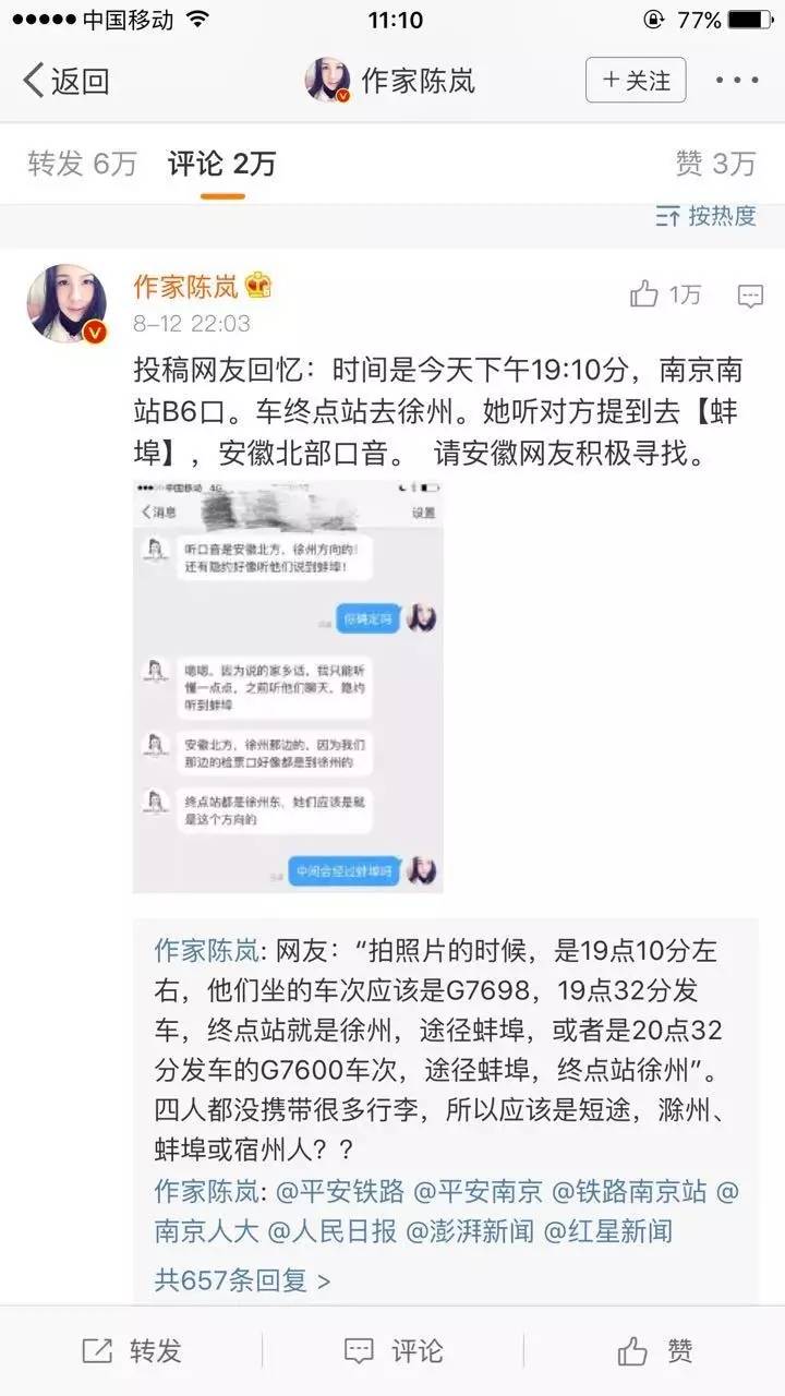 来源 | @作家陈岚微博、@南京铁路公安处南京南所