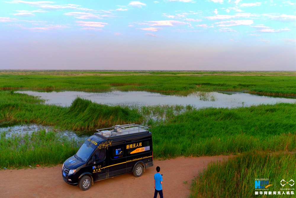航拍“复活”的青土湖 阻隔两大沙漠合拢