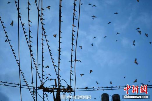连日来,昆明海埂路一城中村,每临傍晚就会有上万只燕子从四面八方集结而来,密密麻麻集群"留宿",次日清晨又准时离开,像受过训练一样,队形整齐。摄影/胡远航任东