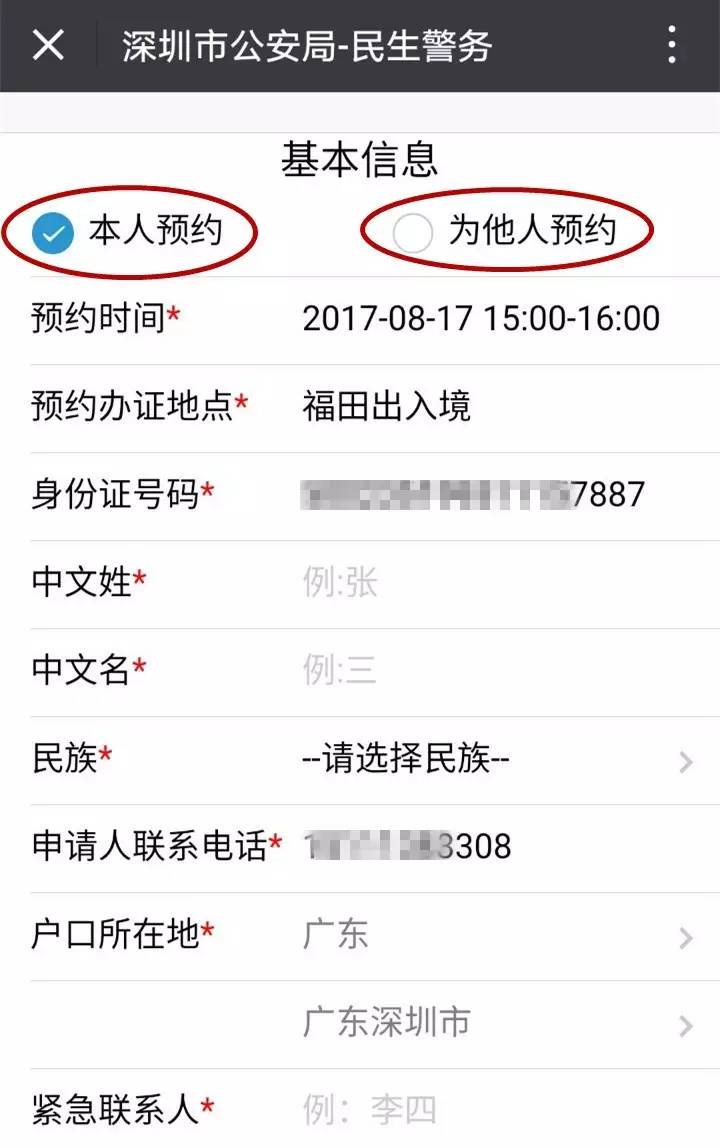 选择“本人预约”或“为他人预约”,并如实填写“基本信息”。