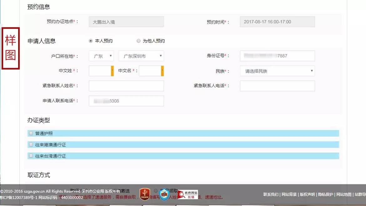 选择“本人申请”或“为他人申请”,如实填写“预约信息”和“申请人信息”,并选择需要办理的“办证类型”。